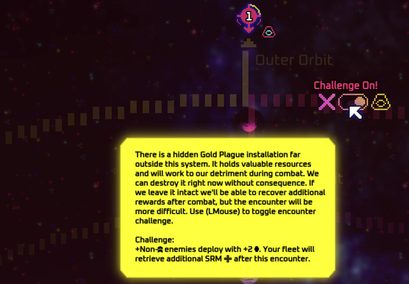 As you can see these will grant additional rewards at the cost of making the encounter harder. Right now there are 8 challenge variants, with some appearing only after you unlocked certain factions.